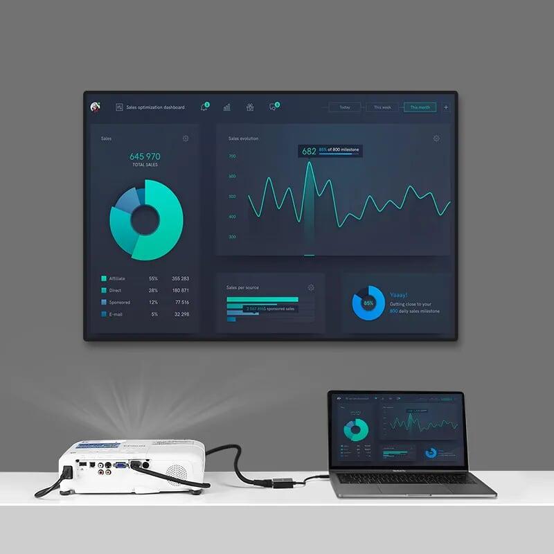- Tính năng: Kết nối máy tính, laptop có cổng USB-C ra màn hình, máy chiếu cổng VGA.