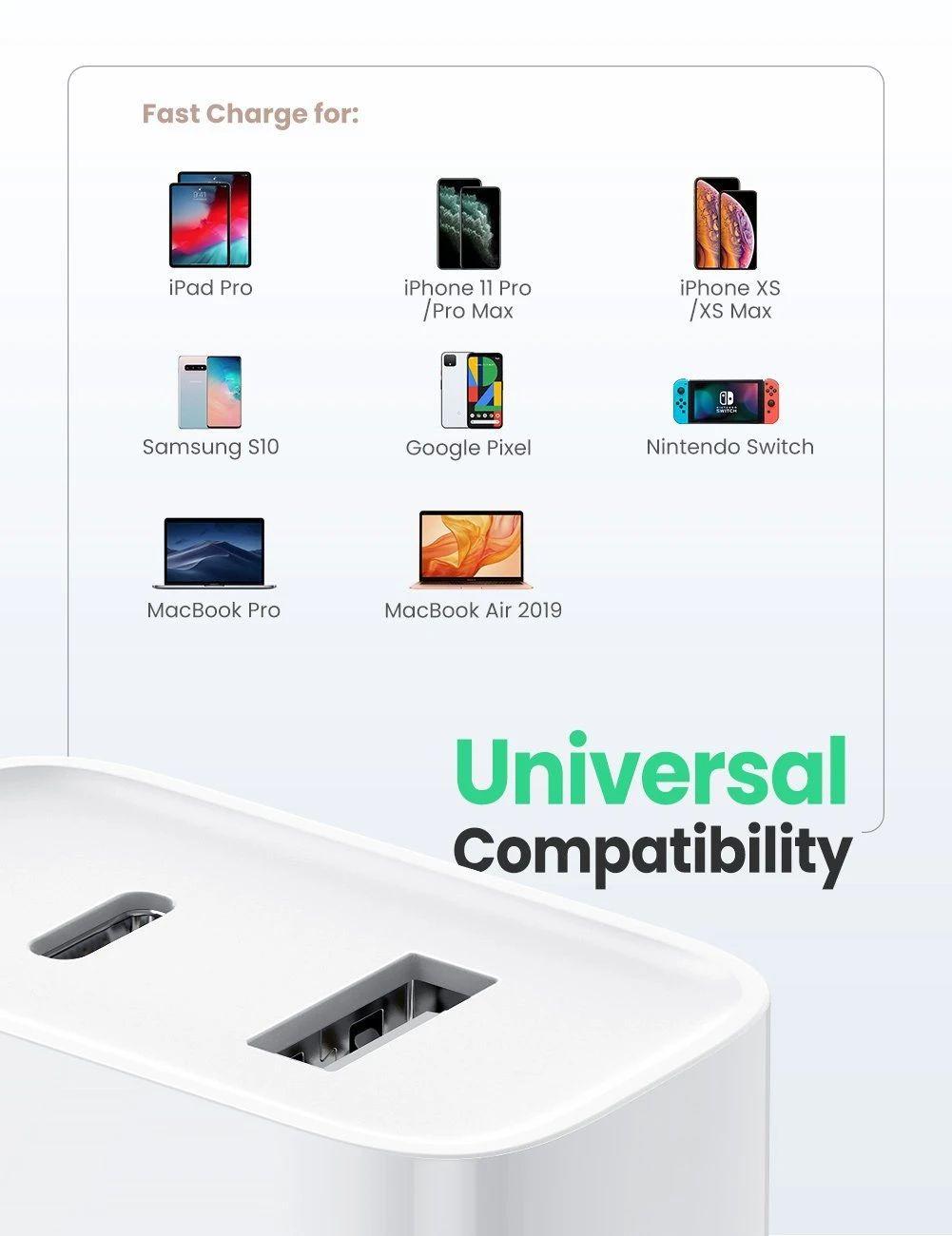 ✨Ugreen UG60467CD170TK 30W bộ sạc 2 cổng sạc USB type C và A màu trắng - HÀNG CHÍNH HÃNG