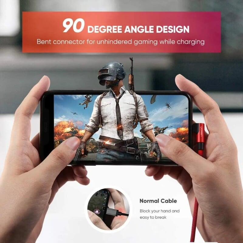 ✨Ugreen UG60555US299TK 1m cáp usb lightning bọc nhôm chống nhiễu góc 90 độ màu đỏ - HÀNG CHÍNH HÃNG