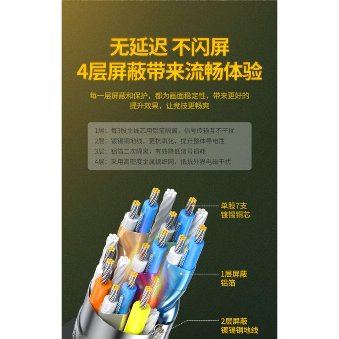 1. DP to HDMI4K male to male aluminum shell with braided mesh 2. Resolution: 3840*2160/60Hz, 2560* 1440/144Hz, 1920* 1080P/240Hz 3. Shielding: aluminum foil + ground wire + magnesium aluminum braid 4. Wire core material: tinned
