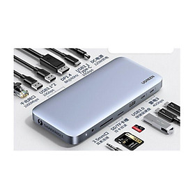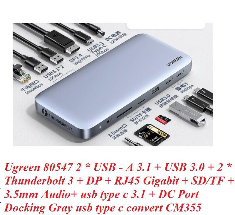 ✨Ugreen UG80547CM355TK 8K 60Hz + 2 cổng Thunderbolt 3 + displayport + 3.5mm + 2 * USB A 3.1 + USB 3.0 + RJ45 Gigabit + SD / TF + usb type c 3.1 + Cổng 120W DC Docking USB bộ chuyển đổi Usb type c màu xám - HÀNG CHÍNH HÃNG