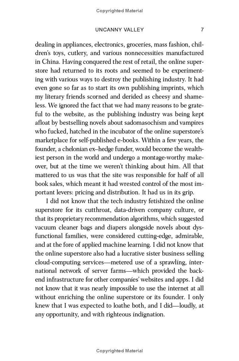 Uncanny Valley ‘Joan Didion at a startup’ Rebecca Solnit ‘Impossibly pleasurable’ Jia Tolentino ‘This is essential reading’ Stylist At twenty-five years old, Anna Wiener was beginning to tire of her assistant job in New York publishing.