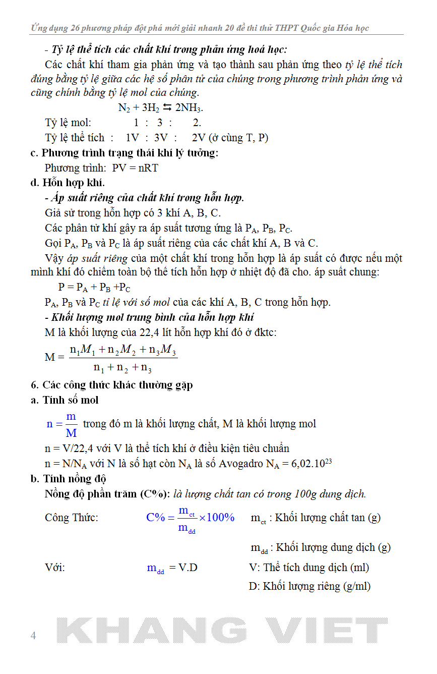 ỨNG DỤNG 26 phương pháp Đột phá mới giải nhanh 20 Đề thi thử THPT Quốc Gia HÓA HỌC