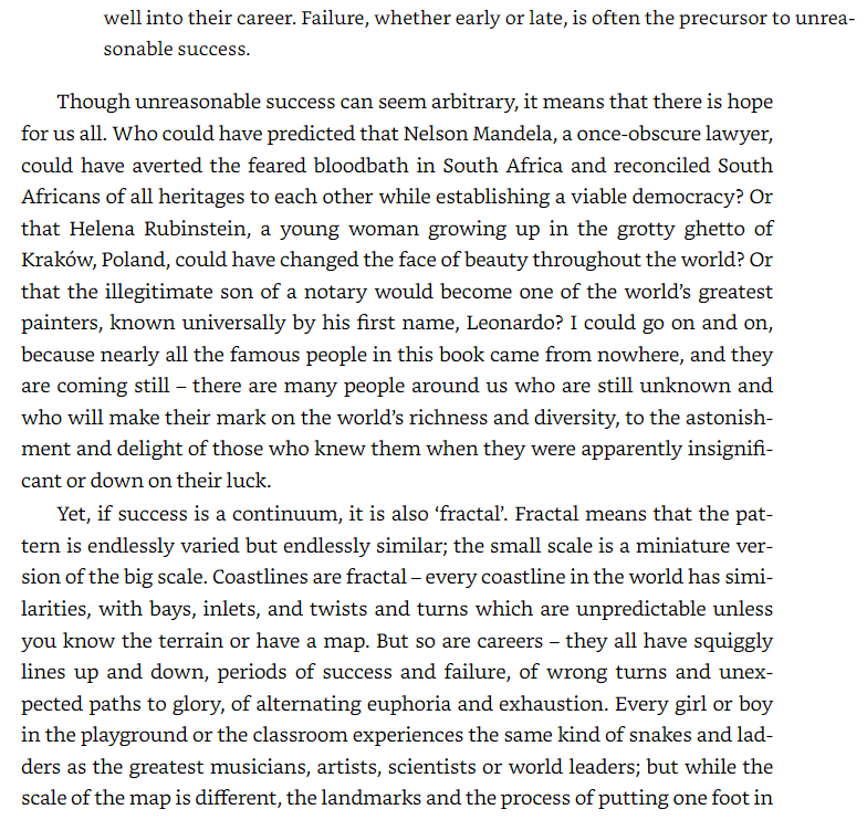 The pattern of success is fractal. It is endlessly varied but endlessly similar. Success does not require genius, consistency, all-round ability, a safe pair of hands or even basic competence. If it did, most of the people in this book would not have impacted the world as they did.