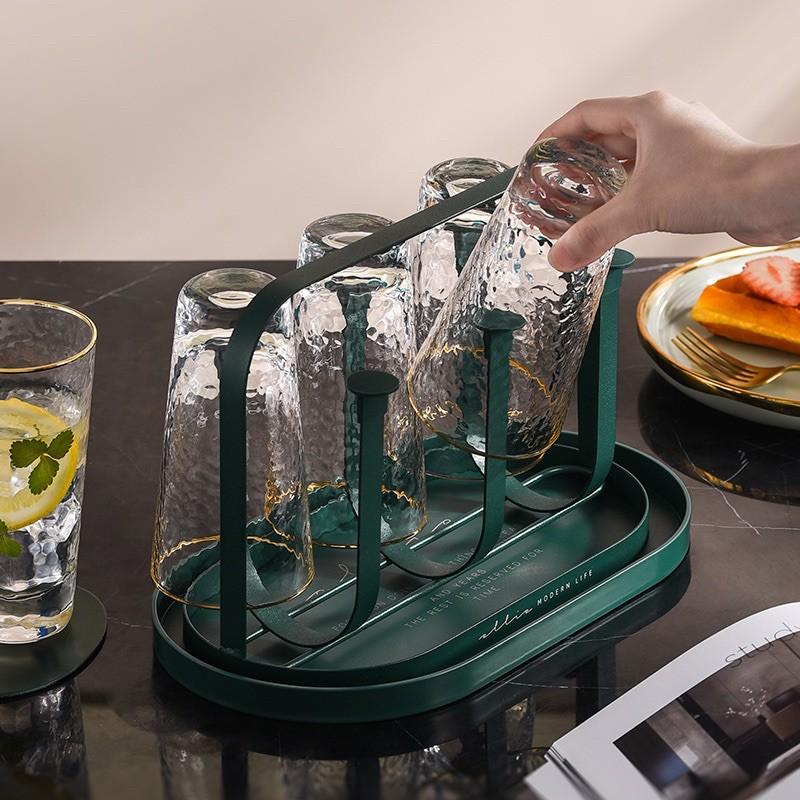 Khay up cốc, giá để ly cao cấp hợp kim mạ vàng sang trọng tặng kèm khay hứng #giadung #reels