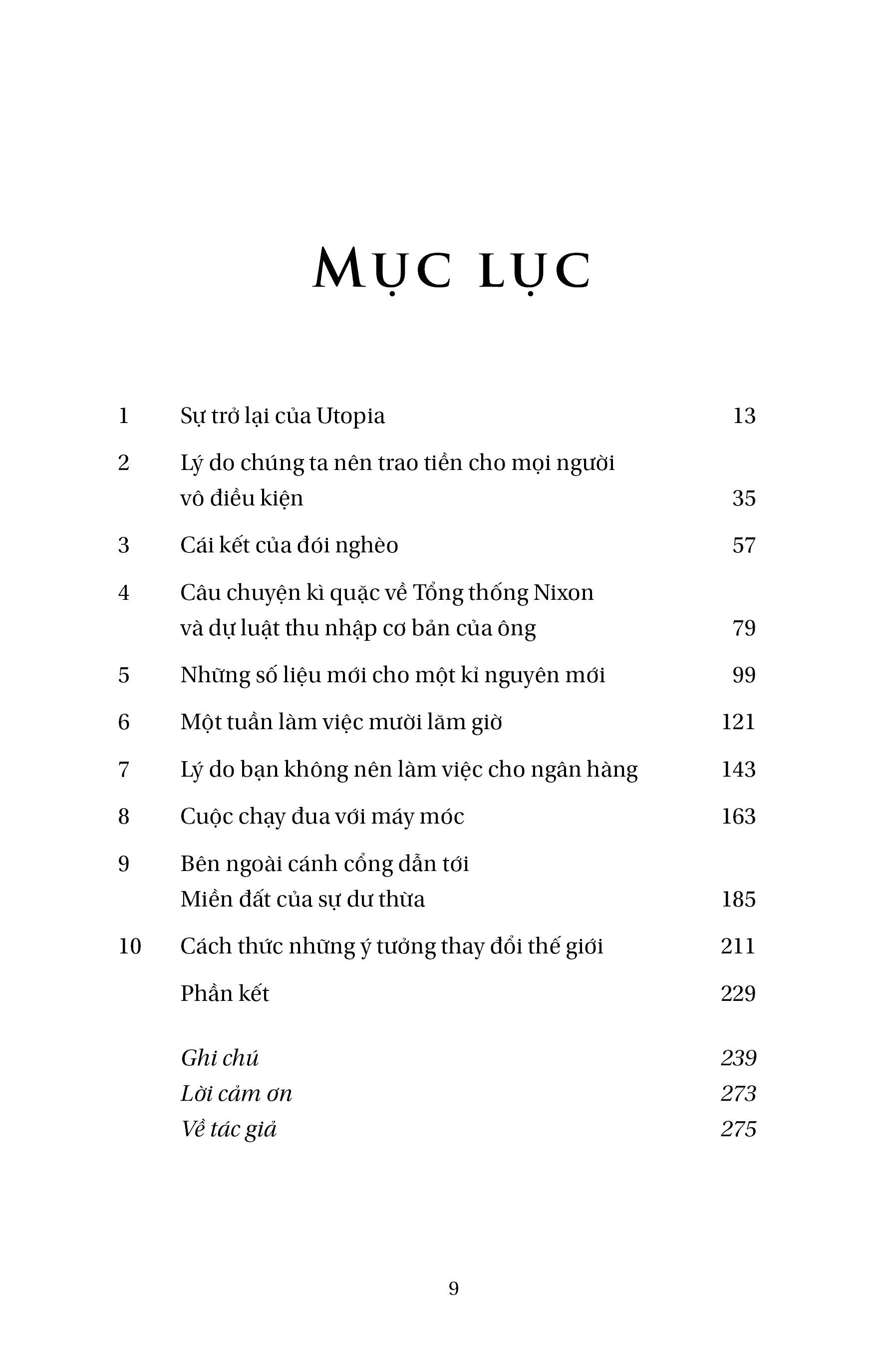 Trong cuốn sách này, Rutger Bregman đã phân tích, lí giải hàm ý của Utopia, thuật lại quá trình nảy sinh ra tư tưởng Utopia trong lịch sử và cả ý nghĩa tích cực cũng như tính tất yếu của xã hội. Nghèo đói, bất công, những điều này đều khơi dậy khao khát của con người đối với “Miền đất của sự dư thừa” (The Land of Plenty), đồng thời nỗ lực hết mình để đạt được điều đó. Trong thực tiễn chính trị xã hội hiện đại cũng tồn tại một vài trải nghiệm mang màu sắc Utopia, ví như “Dự luật thu nhập cơ bản” của cựu tổng thống Mỹ Richard Nixon. Quan niệm dẫn dắt hành động, và nếu chúng ta kiên trì thực hiện hành động trong thời gian dài thì nó sẽ trở thành hiện thực. Đây cũng chính là ý nghĩa của Utopia.