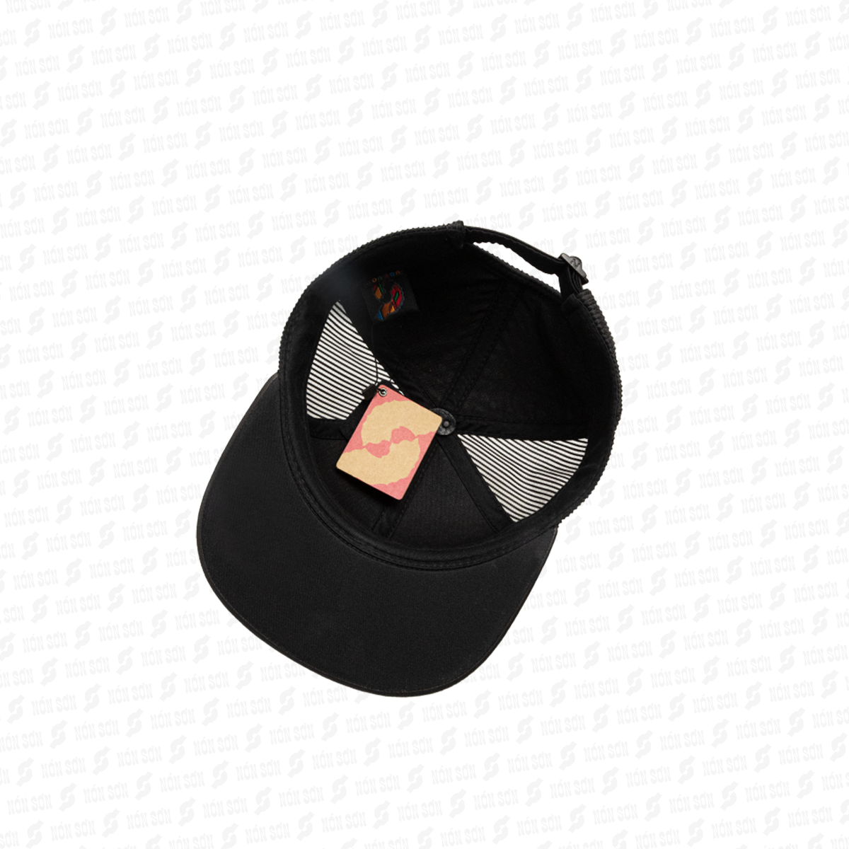 - Sử dụng kẹp phơi vào đai bên trong nón (vị trí giữa lưỡi trai), sao cho lưỡi nón hướng phía trên và dây đuôi hướng phía dưới.