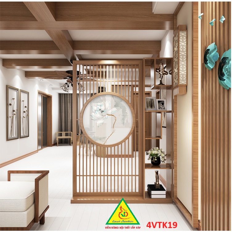 Vách ngăn còn có tủ giúp lưu trữ những vật dụng cá nhân của gia chủ , tận dụng được không gian sống tốt hơn. Sản phẩm lắp ráp dễ dàng di chuyển khi cần thiết.