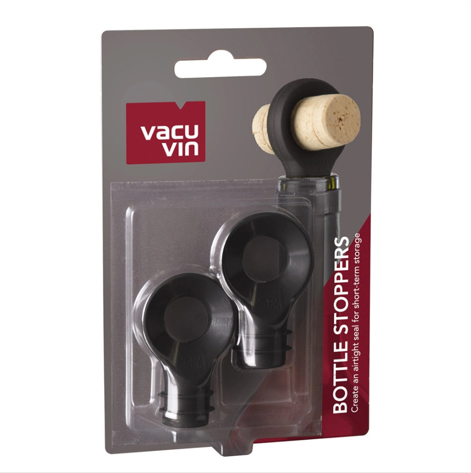 - Bộ nút chai rượu - 2 cái là sản phẩm của thương hiệu Vacu Vin đến từ Hà Lan. Bộ nút chai Vacu Vin giúp khóa chặt nắp chai rượu sau khi khui.