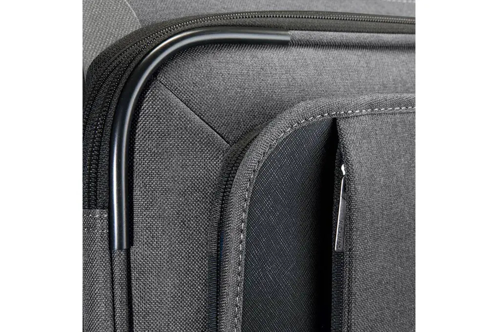 Chất vải có thể chịu được thời tiết & sự mài mòn. Có phần giả da tạo điểm nhấn cho tổng quan vali