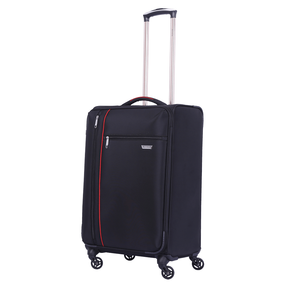 Vali Kéo Du Lịch đen Phối đỏ Có Nắp - 22 Inch được thiết kế từ chất liệu vải Polyester có độ bền cao, chống thấm nước tối ưu giúp bảo vệ hành lý bên