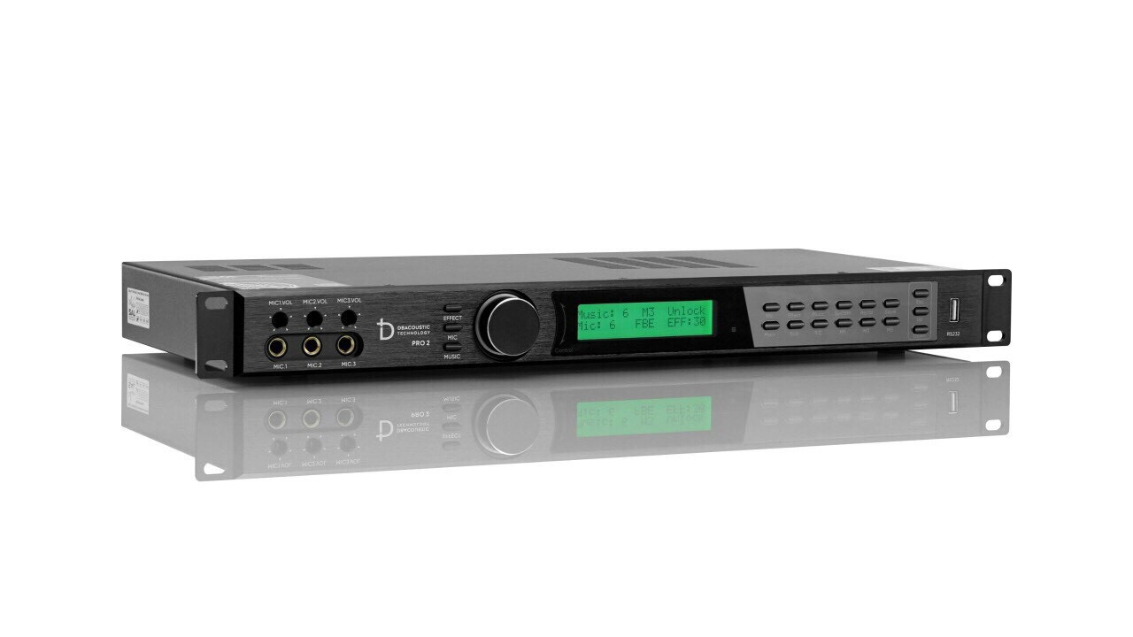 Là dòng vang số mới nhất đến từ nhà hãng DBacoustic được nâng cấp và phát triển hơn so với phiên bản Pro 2 Được sản xuất trên dây chuyền tiên tiến, hiện đại bậc nhất. Vang số DB acoustic Pro 2 có 1 thiết kế vô cùng sang trọng. Cùng hệ thống mún chỉnh tay các thông số của vang qua 1 màn hình LCD cớ lớn. Cho thao tác tinh chỉnh cũng như quản lý các thông  số trở nên thật dễ dàng. D9800 II hiện là một trong những dòng vang số cao cấp nhất của hãng đã từng cho ra mắt, hứa hẹn sẽ mang đến trải nghiệm âm thanh karaoke vô cùng tuyệt vời.   ●Hỗ trợ màn hình: 3.2" 65.5K Màu ●Kênh đầu ra: có 6 nhóm cân bằng, có thể linh hoạt với op-amp nguồn ● Mỗi đầu vào có : Hi-pass, Lo-pass, 7 băng tần EQ ● Kênh đầu ra chính có :15 ban nhạc PEQ, X-OVER, Mix tăng chậm trễ Etc ● 2 Ngôn ngữ: Tiếng Anh / Tiếng Trung ● Hỗ trợ sẵn cổng Quang ( Optical ) ● 4 chế độ phản rồi riêng biệt ( feedback) ● Phần mềm điều khiển chuyên nghiệp trên máy tính, kết nối với máy tính qua cổng USB. ● 21 nhóm chức năng bộ nhớ, của 10 nhóm cài sẵn và 10 nhóm hiệu quả, bộ nhớ 1 nhóm dữ liệu ● Thời gian khởi động có thể đặt lại theo tùy từng nhu cầu sử dụng của mỗi khách hàng khác nhau ● 3 chế độ khóa riêng biệt, có thể sử dụng chế độ khóa toàn bộ thiết bị. ● Thêm cổng cắm SUB,MIC vào đầu vào, tự động thay đổi các chế bài hát disco & bài hát. Tín hiệu AUTO phân rã, tốc độ được điều chỉnh