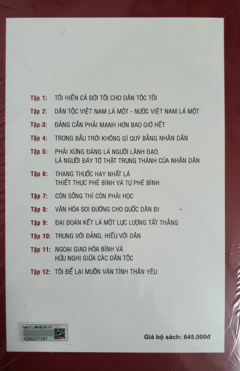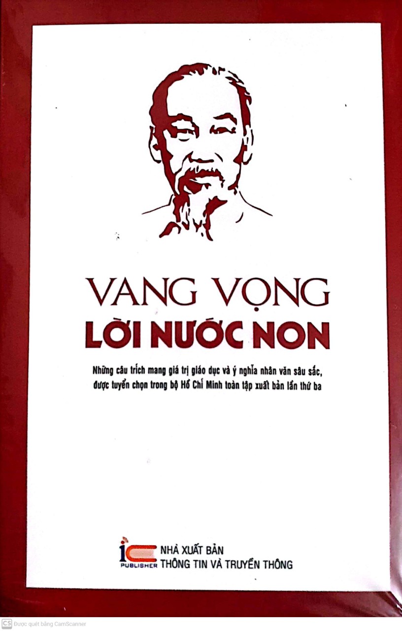 Bộ sách "Vang Vọng Lời Nước Non" thể hiện sinh động những nội dung căn cốt nhất, cốt lõi, cái hồn của minh triết Hồ Chí Minh, tư tưởng cực kỳ sâu sắc, cô đọng, phong phú và dễ tiếp cận, cũng như những phẩm chất vô cùng cao quý ,mà bình dị của nhân cách một con người vĩ đại- Chủ tịch Hồ Chí Minh Tập 1 - Tôi hiến cả đời cho đời tôi cho dân tộc tôiTập 2 - Dân tộc Việt Nam là một - Nước Việt Nam là mộtTập 3 - Đảng cần phải mạnh hơn bao giờ hếtTập 4 - Trong bầu trời không gì quý bằng Nhân dânTập 5 - Phải xứng đáng là người lãnh đạo, là người đầy tớ trung thành của Nhân dânTập 6 - Thang thuốc hay nhất là : Thiết thực phê bình và tự phê bìnhTập 7 - Còn sống thì còn phải họcTập 8 - Văn hóa soi đường cho quốc dân điTập 9 - Đại đoàn kết là một lực lượng tất thắngTập 10 - Trung với Đảng - hiếu với DânTập 11 - Ngoại giao hòa bình và hữu nghị giữa các dân tộcTập 12 - Tôi để lại muôn vàn tình thân yêu