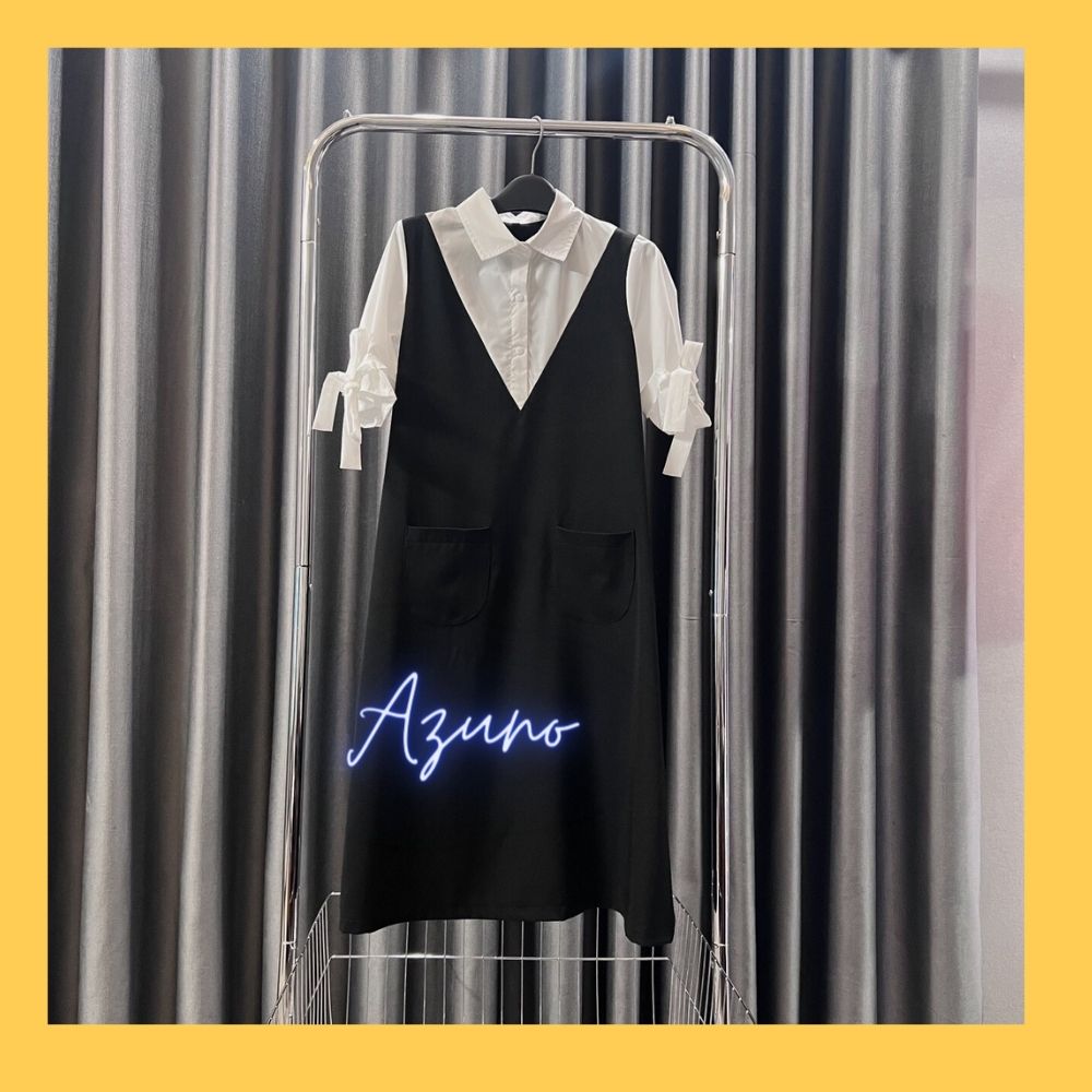 1. Thông tin chi tiết sản phẩm Váy bầu phối cổ tròn, đầm bầu đi làm, đi chơi, thiết kế sang trọng by Azuno Chất liệu chéo nhật phối trượt tằm xờ siêu mát tay