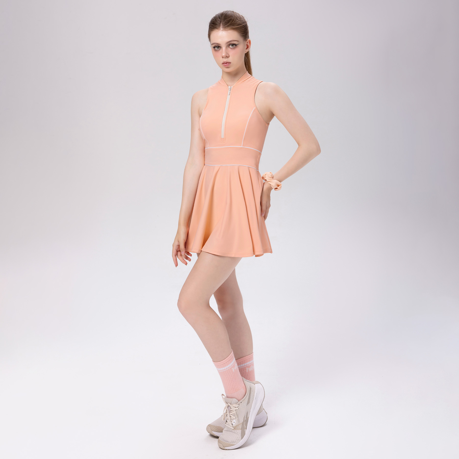 ✨Váy Pickleball liền thân Hibi Sports D102 Kiểu dây kéo dáng xòe, kèm quần shorts và mút ngực phù hợp tennis, cầu lông