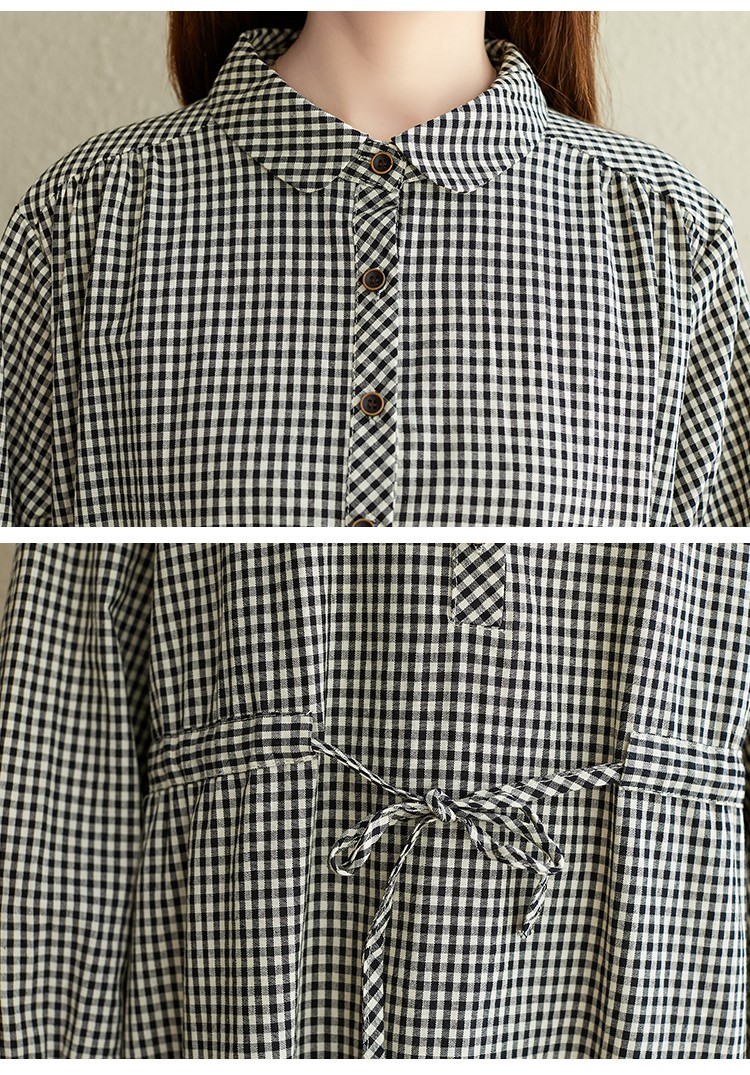 Váy sơ mi kẻ caro phối thêu nơ dễ thương, mang đến vẻ ngoài năng động nhưng vẫn nữ tính. Thiết kế: Dáng suông thoải mái, cổ sơ mi thanh lịch. Điểm nhấn: Họa