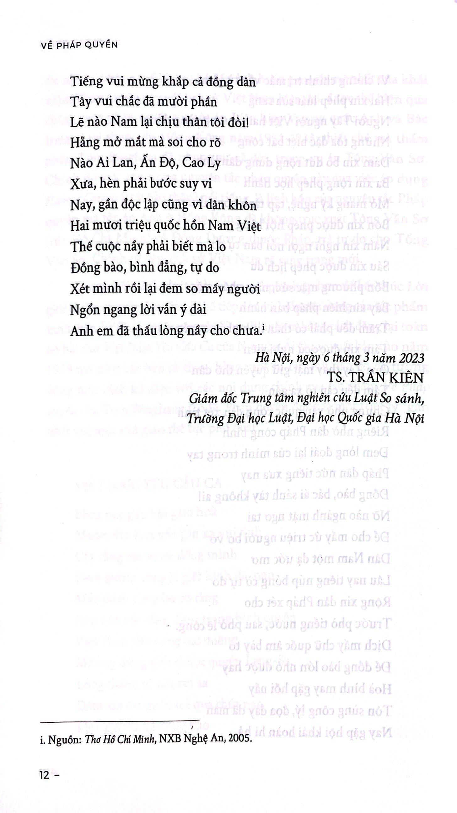 Mua tại TiktokVề Pháp Quyền Trong “Về Pháp Quyền”, Tom Bingham, một trong những bộ óc sắc bén nhất thế giới về pháp lý, đã bàn luận về ý nghĩa của pháp quyền. Theo ông, pháp quyền không phải là một học thuyết pháp lý khô khan mà là nền tảng thực sự của một xã hội công bằng, là sự bảo đảm của một chính phủ có trách nhiệm, có đóng góp quan trọng cho sự phát triển kinh tế, đồng thời cũng góp phần đàm bảo hòa bình và sự hợp tác giữa các quốc gia. Cuốn sách trình bày ngắn gọn về lịch sử của nguyên tắc pháp quyền, tám yếu tố cơ bản tóm gọn bản chất của khái niệm này, đồng thời thảo luận về những căng thằng đối với pháp quyền đến từ chủ nghĩa khủng bố quốc tế. Sách có ba phần chính: