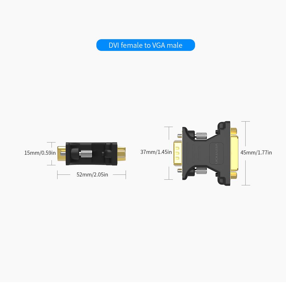 VENTION DVI to VGA Adapter is a device for connecting a device outputs DVI videoto a display that only uses VGA inputs. It can be used with devices such asprojectors for presentations and movies. Features: