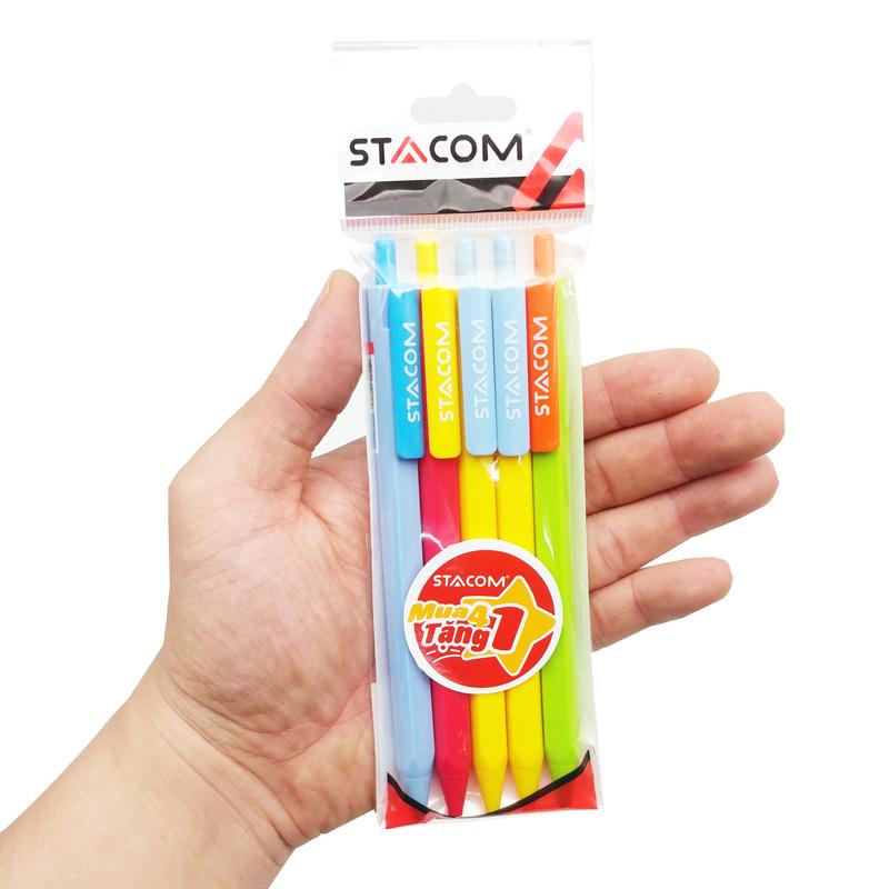 Mua tại TiktokVỉ 4 + 1 Bút Chì Bấm 0.5 mm - Stacom VMP2015 (Màu Thân Bút Giao Ngẫu Nhiên)