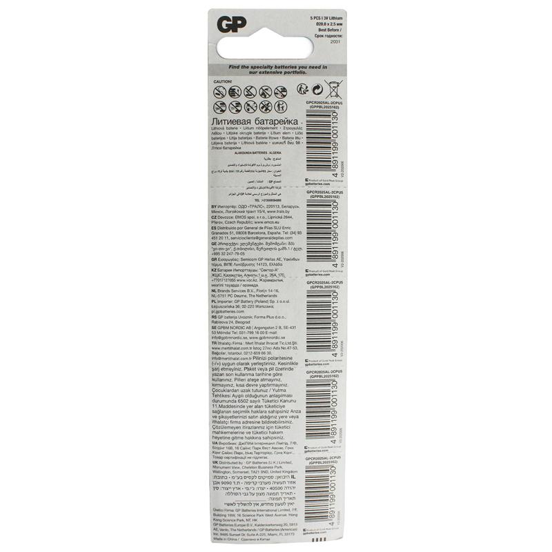 Vỉ 5 Pin Cúc Áo GP Lithium Coin Battery 3V - GP CR2025-2CPU5