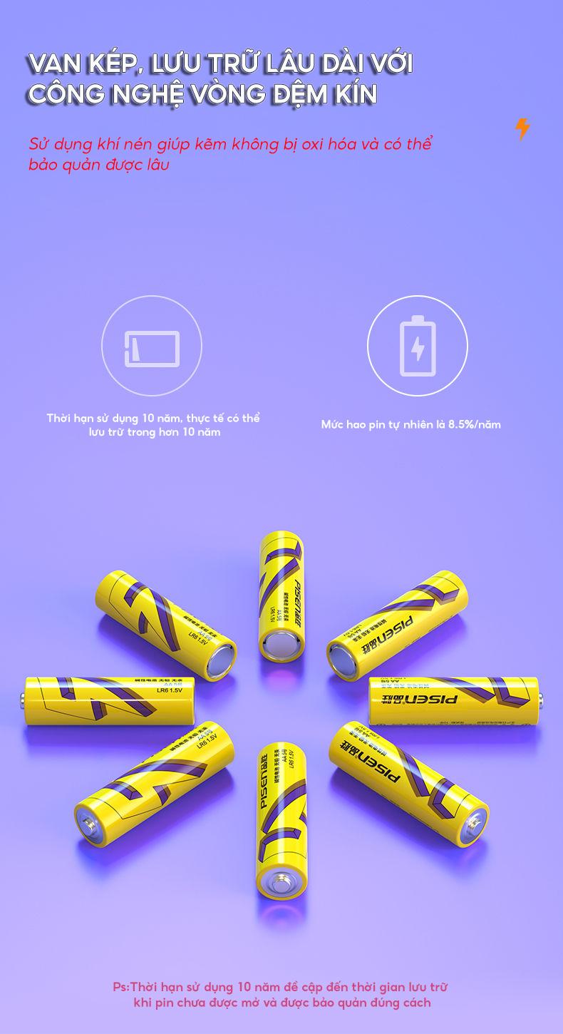 - Pin khô Purple Gold AA5 (Pin Tiểu) LR6 1.5V Super Heavy không chứa chì. Vật liệu bên trong có độ tinh khiết cao hơn, năng lượng điện mạnh hơn, thiết bị điện tiêu thụ nhiều năng lượng phù hợp hơn, hiệu quả hơn. Công nghệ "siêu lõi" tiên tiến, sức mạnh lâu dài hơn. Lữu trữ hơn 10 năm.