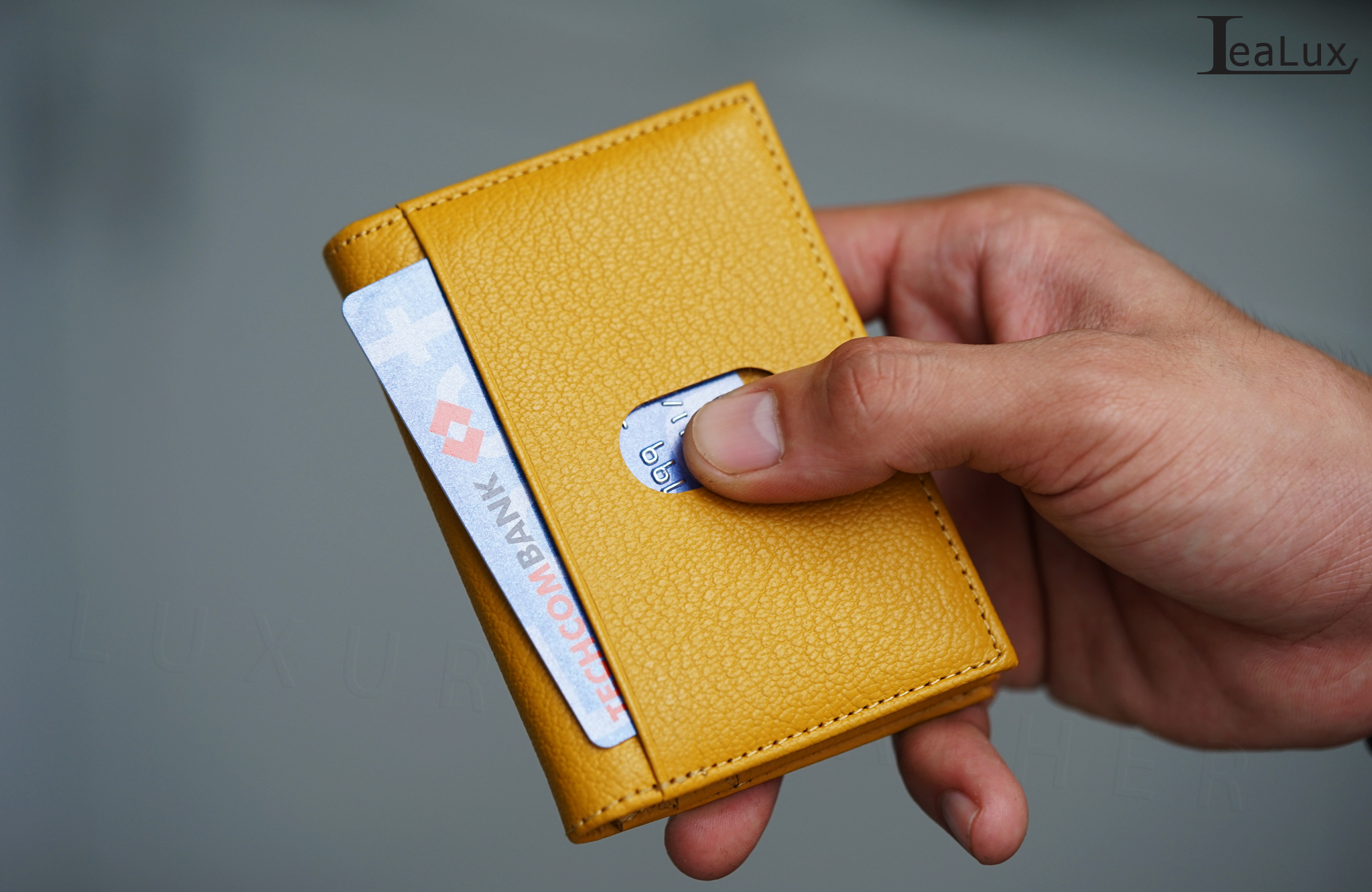 Ví Card Holder - Size : 10.8 x 7.8 x 1.5cm - chứa được 15 cái thẻ + tiền - 1 ngăn ngoài đẩy card nhanh - nhét vừa giấy CMND cũ