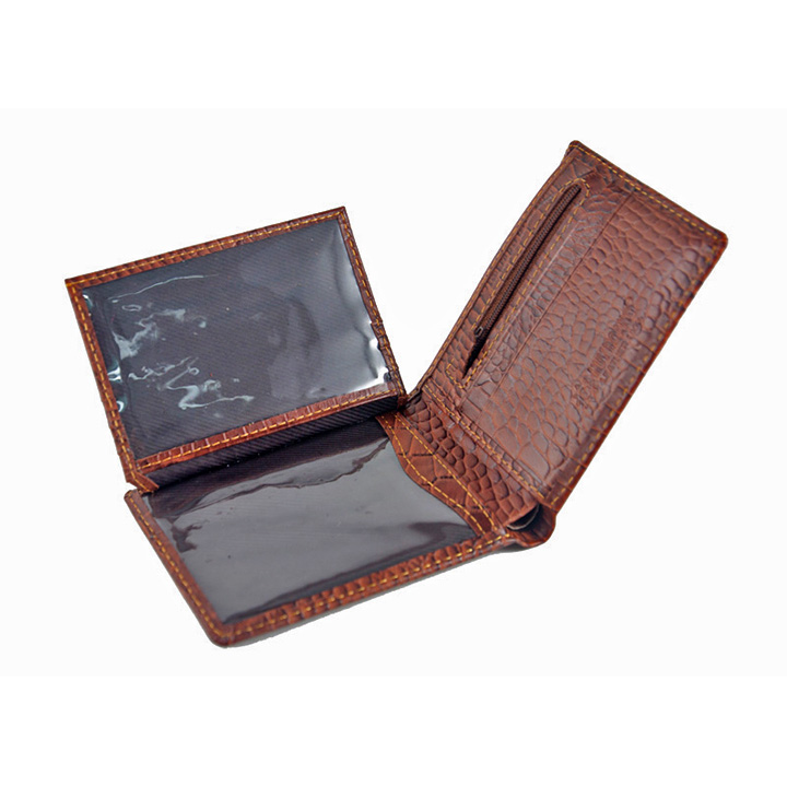 Ví/Bóp nam Huy Hoàng da bò vân cá sấu màu nâu 2112