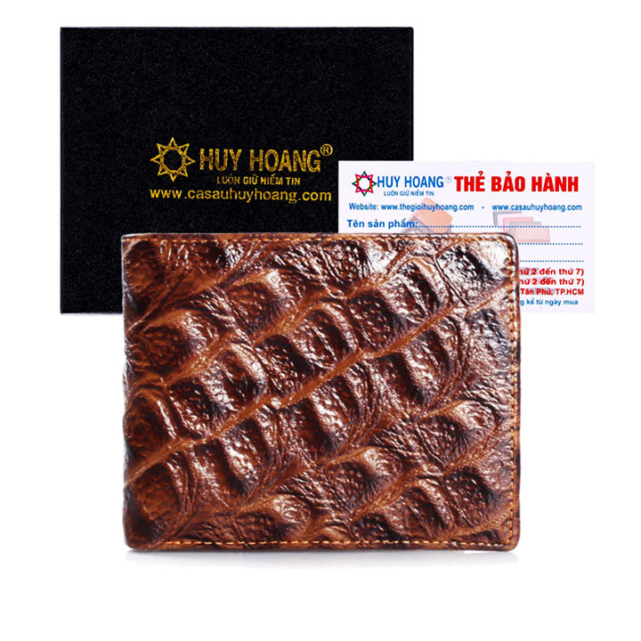 Ví/Bóp nam Huy Hoàng da bò vân cá sấu màu nâu 2118