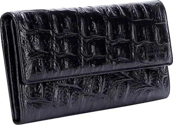 Ví/Bóp nữ da bò Huy Hoàng vân cá sấu lớn 3 gấp màu đen 3152