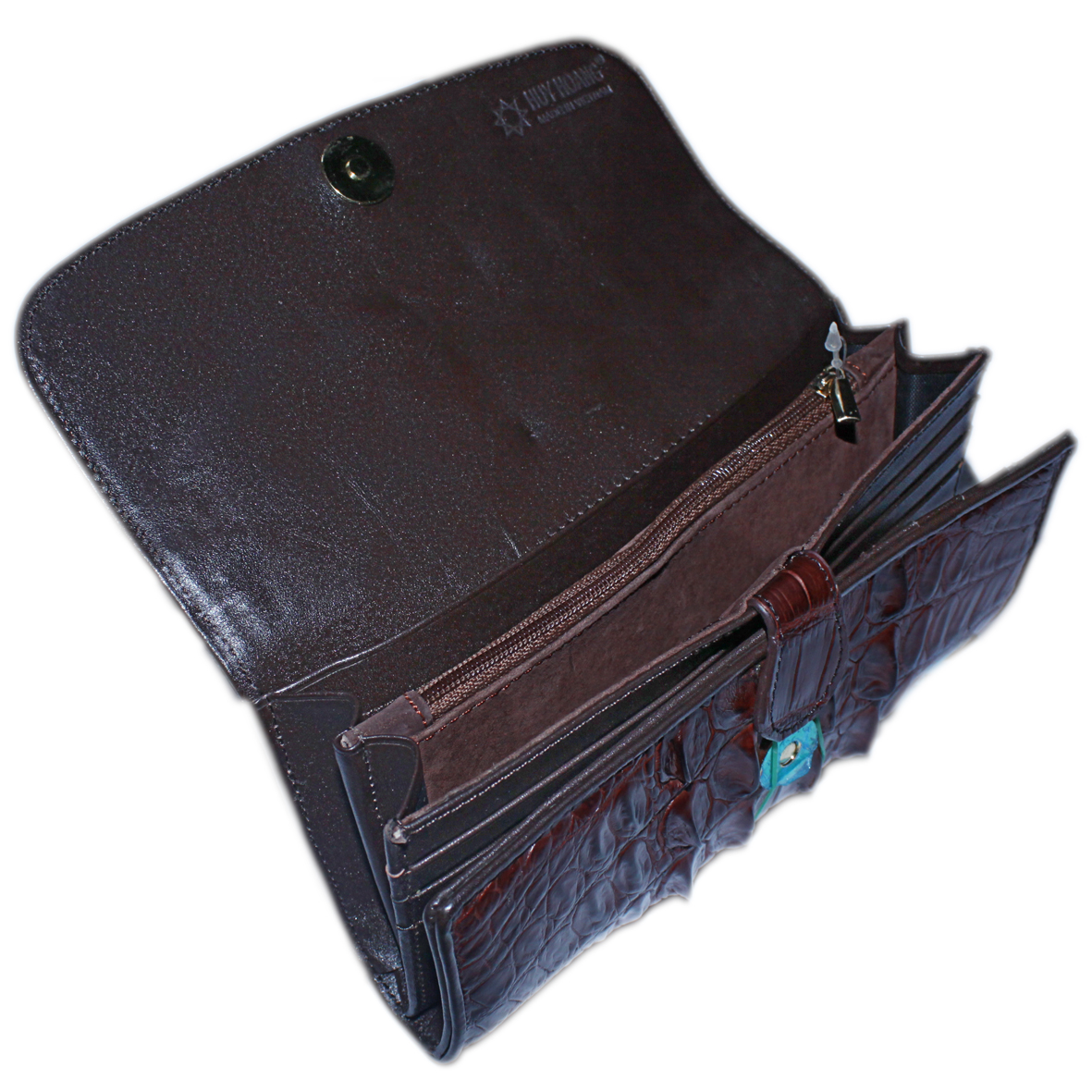 Ví/Bóp nữ da bò vân cá sấu Huy Hoàng 2 gấp màu nâu 3117