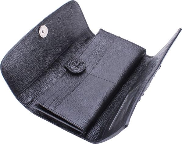 Ví/Bóp nữ Huy Hoàng da bò vân cá sấu 2 gấp màu đen 3102