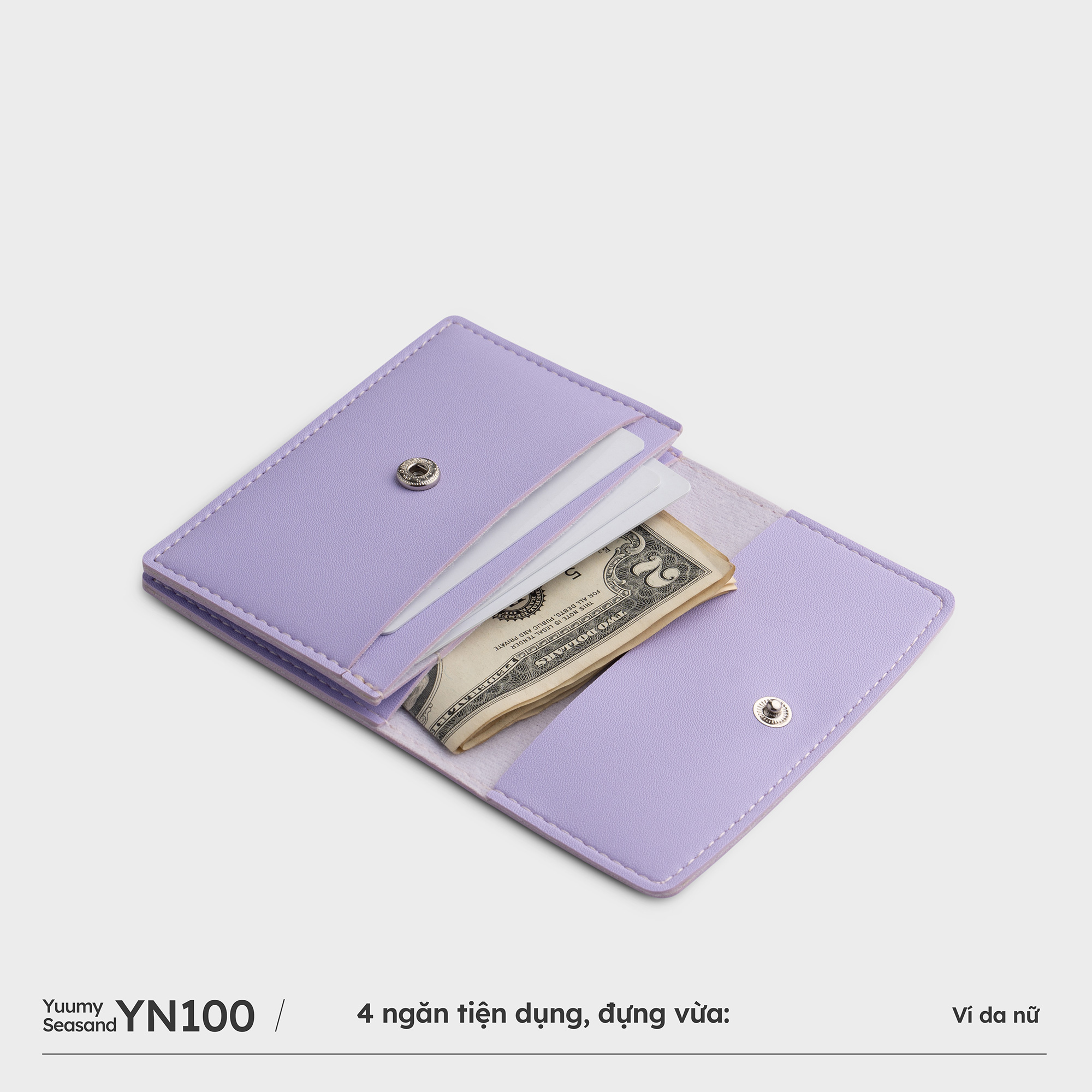 Ví da nữ dáng ngắn thời trang YV100 có thiết kế nhỏ gọn tiết kiệm diện tích, có thể nằm vừa trong túi xách, balo của bạn. Ví được làm từ chất liệu da tổng hợp cao cấp không bong tróc, không thấm nước, đường may chắc chắn. Bên trong có đầy đủ các ngăn đựng tiền mặt, thẻ ngân hàng, giấy tờ tùy thân. Sản phẩm có những gam màu thời thượng, trẻ trung, ngọt ngào phù hợp với đa dạng sở thích của khách hàng. THÔNG SỐ KỸ THUẬT: - Chất liệu: Da tổng hợp cao cấp - Kích thước: Dài 11cm, Rộng 0,5cm, Cao 8cm - Số ngăn: 4 ngăn (2 ngăn chính, 2 ngăn phụ) - Công dụng: Đựng thẻ, tiền mặt, giấy tờ tùy thân, - Trọng lượng: 48 grams - Xuất xứ: Việt Nam. LƯU Ý: * Vui lòng cho phép sai số 1-2cm do đo lường thủ công. * Màu sắc thực tế của sản phẩm có thể hơi khác so với hình ảnh được hiển thị do sự khác biệt giữa màn hình và độ sáng. *THÔNG TIN ĐỔI TRẢ: - Hỗ trợ đổi trả trong vòng 7 ngày kể từ ngày nhận hàng. - Nhận đổi trả với sản phẩm bị lỗi kỹ thuật từ nhà sản xuất như dây kéo, đường chỉ, móc khóa… - Bị lỗi do quá trình vận chuyển (khách hàng vui