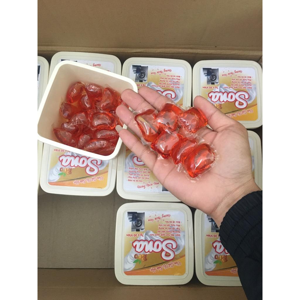 Viên giặt xả sinh học SONA giặt xả quần áo 2 trong 1 hộp 30 viên lưu hương lâu làm mềm vải an toàn cho da diệt vi khuẩn