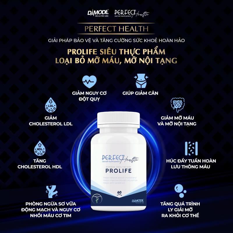 - Đây được xem là sản phẩm tuyệt vời có khả năng hạ lượng Cholesterol tự nhiên và giảm Cholesterol trong máu đã được công nhận và đánh giá công dụng. PROLIFE giúp cải thiện vóc dáng PROLIFE xứng đáng là thực phẩm có trong tủ thuốc nhà bạn để loại bỏ mỡ máu và ngăn ngừa đột quỵ. Hãy đến với Damode để lựa chọn được sản phẩm chính hãng nhất