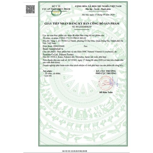 Viên uống Vitamin E DHC Nhật Bản THÔNG TIN CHUNG - Thực phẩm bảo vệ sức khỏe DHC Natural Vitamin E (soybean) có chứa tới 301,5mg vitamin E hoạt tính cao dưới dạng d-alpha tocopherol