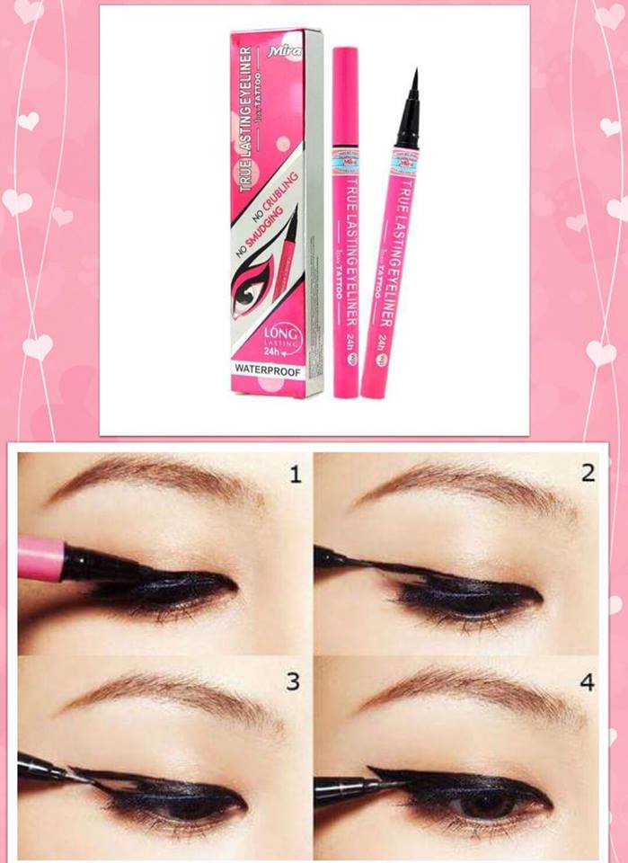 - Viết kẻ lông kẻ mí MIRA được thiết kế với ngòi viết thanh gọn, tạo nét vẽ mảnh, mịn. - Dùng viết để vẽ dài đuôi mắt hoặc viền mi mắt trên, mi mắt