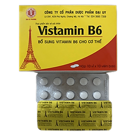 - Công dụng của Vistamin B6 Đại Uy Bổ sung vitamin B6 cho cơ thể, hỗ trợ cải thiện tình trạng thiểu hụt vitamin nhóm B6