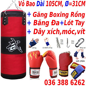 Bộ Vỏ Bao Đấm Bốc Treo Tường 3 Lớp Cao Cấp – Chọn Size - Mua 1 Tặng 7 Phụ Kiện Tập Luyện Siêu Bền Tập Boxing, Tập MMA – Dây Quấn Dài – Chính
