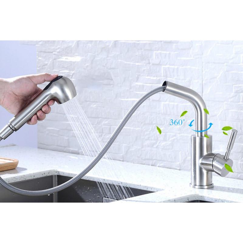 Chất liệu: Inox 304 Thiết kế 2 đường nước nóng lạnh Đầu vòi rửa có thể kéo dài Đầu vòi tạo bọt, giúp tiết kiệm nước và hạn chế bắn nước khi sử dụng Vòi