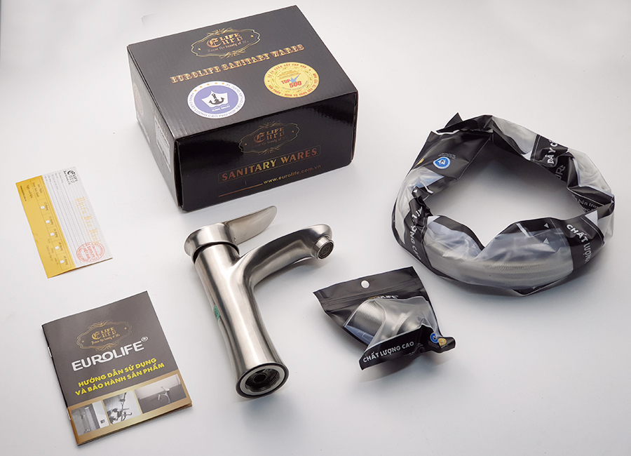 Vòi Lavabo nóng lạnh Đồng mạ Chrome Eurolife EL-8002 ️Thương hiệu Eurolife Việt Nam ️ Chất liệu : Sản phẩm được đúc trọng lực với hợp kim đồng 61% , mạ Chrome và Niken (Ni -10micro , Cr-0.3micro). Độ bóng sáng cao và không bị dính két vết bẩn. ️ Màu sắc : Trắng bạc ( Crôm Bóng sáng) ️Trọng lượng : 1006Grs ️Bảo hành : 5 năm ️Sản phẩm chất lượng cao, không bong tróc lớp men (lớp mạ) khi sử dụng trong thời gian dài. Tuổi thọ lớp men lên tới 20 năm. CHI TIẾT SẢN PHẨM =================== CHẤT LIỆU AN TOÀN ️ Thân vòi được đúc từ Đồng H61, đạt tiêu chuẩn Châu Âu cho vật liệu. An toàn cho người sử dụng và thân thiện với môi trường. MẠ CHROME 5 LỚP ️ Thân vòi được mạ 5 lớp với 1 lớp mạ Đồng, 2 lớp mạ Kẽm, 1 lớp mạ Niken bên trong và lớp Chrome bên ngoài với độ dày lên tới 11um, giúp vòi luôn sáng bóng và không bị nổ xi, bong tróc lớp mạ khi sử dụng ( Đã được Quatest 3 chứng nhận). THIẾT KẾ ƯU VIỆT ️ Thân vòi với chiều cao, tạo cảm giác thoải mái, phóng khoáng khi sử dụng. Thuận tiện khi rửa mặt và xả nước. CÔNG NGHỆ TẠO BỌT DÒNG CHẢY ️ Đầu vòi với thiết kế dòng nước đan chéo xen kẽ nhau, tạo bọt, chống văng bắn và tiết kiệm nước. ️ Đầu vòi có thể tháo rời để vệ sinh lưới lọc bên trong khi cần thiết. ️ Áp lực nước mạnh mẽ, không văng bắn khi sử dụng. ️ Thân vòi cao với thiết vuông, tạo cảm giác khỏe khoắn và sang trọng cho phòng tắm. ️ Tay cầm thiết kế vuốt vuông, dễ cầm nắm, giúp đóng mở nguồn nước dễ dàng. Logo Eurolife được in trên tay cầm cùng tem điện tử thông minh chống hàng giả, có thể truy xuất nguồn gốc được dán sau lưng sản phẩm. BÁT GẮN VÀ DÂY KẾT NỐI ️ Bát gắn bằng Đồng thau bền bỉ, Ren gắn 32mm, phù hợp với các loại lỗ chờ của Lavabo. Bát siết có đường kính 44mm. ️ Chiều dài ống gắn 46mm, có thể gắn cho nhiều mặt đá dày. ️ Bát gắn bằng chắc chắn và cứng cáp cho việc lắp đặt, đi kèm 2 roong cao su đệm bên trên và bên dưới thành chậu. ️ Dây cấp dài 50cm chịu nhiệt cao. Thân dây bằng Inox, 2 đầu ren được đúc bằng Đồng thau bền bỉ. Hai dây hoàn toàn có thể chịu nhiệt độ cao lên đến 100 độ C. Ống dẫn được làm từ cao su tổng hợp EDPM .Cao su EPDM có dãy nhiệt độ làm việc từ -50° C tới 120°/ 150°C (- 60° F tới 250°/ 300°F). Tính chất nổi bật của loại vật liệu EPDM là nhờ khả năng kháng được rất tốt với các loại dung môi, axit loãng, kiềm loãng, hơi nước, ánh sáng mặt trời, tác động của tia ozon và làm việc được trong môi trường nhiệt độ cao. TRÁI TIM SẢN PHẨM ️ Eurolife sử dụng van Ceramic JJ - thương hiệu nổi tiếng và chất lượng cao của Đài Loan cho các sản phẩm. Van Ceramic với 160.000 lần sử dụng (tương ứng với 30 lần sử dụng trên ngày trong suốt gần 15 năm liên tục). Van lớn được thiết kế độc quyền bởi Eurolife cho dòng chảy tối đa 18l/min với áp suất 0.5MPA, giúp van chảy cực mạnh kể cả khi áp lực yếu. THÔNG SỐ SẢN PHẨM ️ Trọng lượng thực tế của sản phẩm : 1006 Grs BẢN VẼ KỸ THUẬT ĐÓNG GÓI SẢN PHẨM ️ Bộ sản phẩm đầy đủ bao gồm : 1- Thân vòi Lavabo 2- Bộ 2 dây Inox SUS 304, 1 bát lắp đặt, 2 roong cao su 3- Sách hướng dẫn sử dụng kèm thẻ bảo hành Sản phẩm của Eurolife đã được Trung tâm kỹ thuật tiêu chuẩn đo lường Chất lượng 3 (Quatest 3) phân tích thử nghiệm và chứng nhận: ️ Độ dày lớp mạ lên tới 11um. ️ Tỉ lệ vật liệu đạt tiêu chuẩn