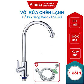 ✨Vòi Rửa Chén Lạnh Pimisi PVB-21+DC Inox 304 Sáng Bóng Cho Chậu Rửa Chén Bát 1-2 Hố, Đơn 1 Đường Nước | Chính Hãng