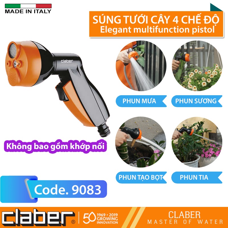 ✨Vòi Tưới Cây Đa Năng Claber Elegant 9083, nhựa ABS, kết nối nhanh, tưới 4 chế độ