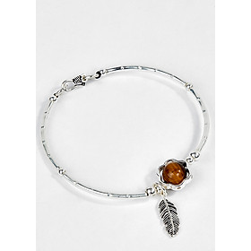 Vòng Bạc Hạt Đá Mắt Hổ Vàng Nâu Phối Charm Lá Ngọc Quý Gemstones
