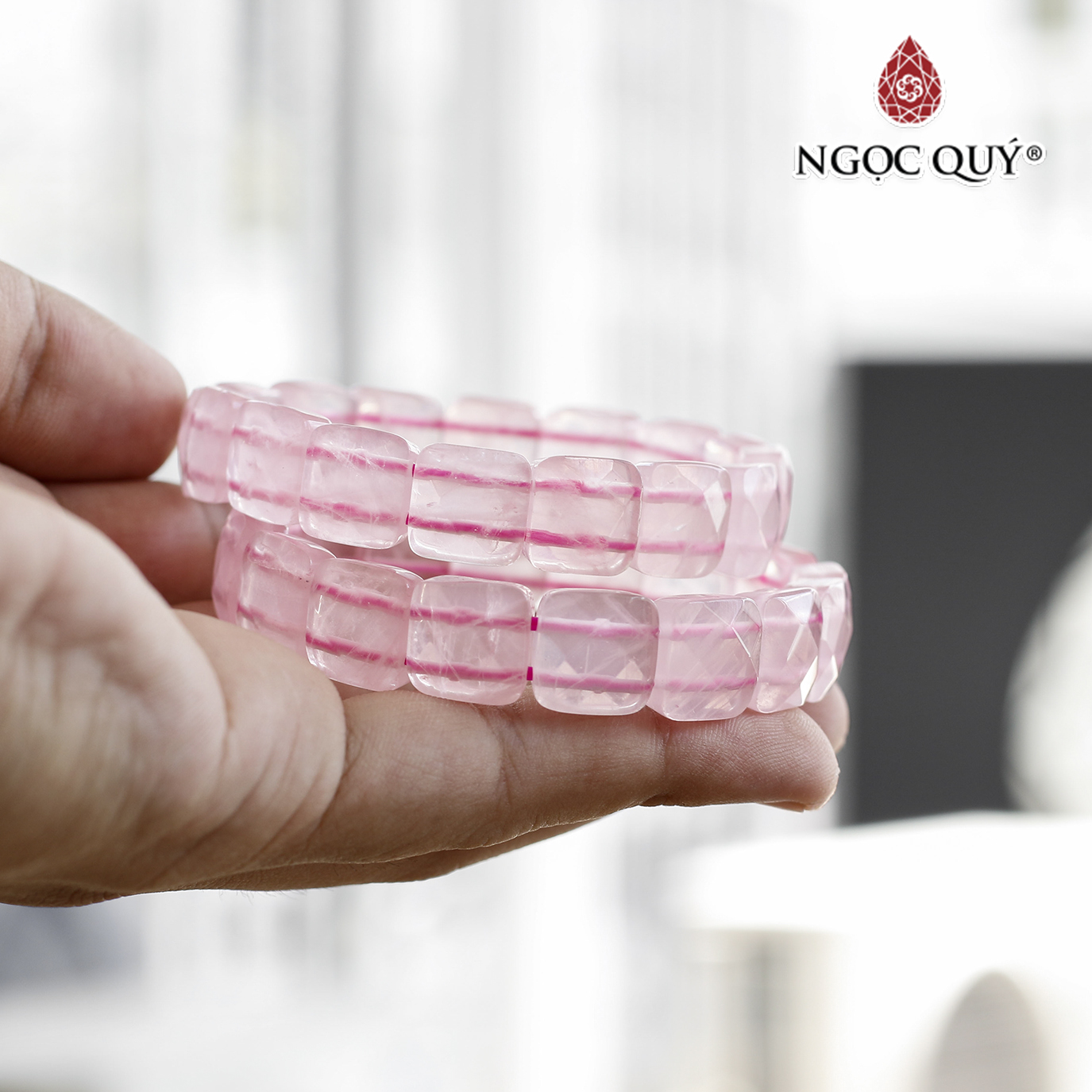 Vòng tay nguyên khối đá thạch anh hồng nhạt - Hợp Mệnh Hỏa & Thổ [Ngọc Quý]