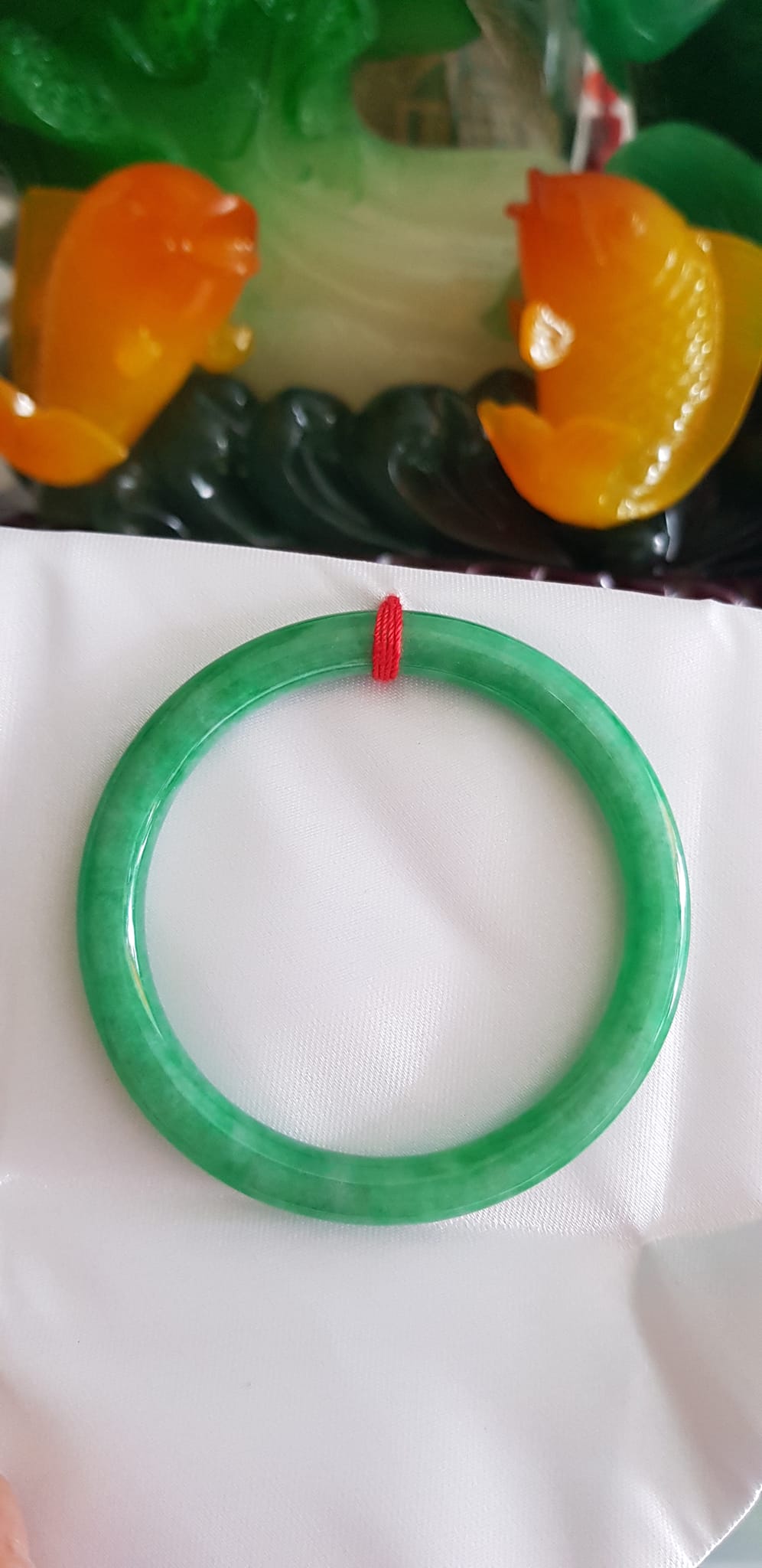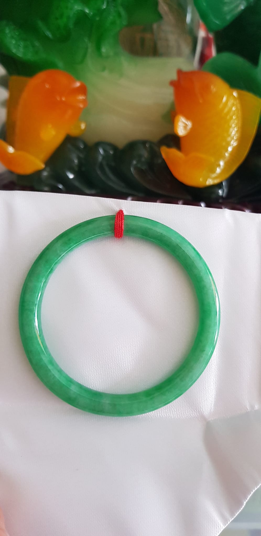 CHIẾC VÒNG TAY PHONG THỦY ĐÁ CẨM THẠCH LÝ ĐẸP K 54MM x DẦY 8MM MÀU XANH LÁ ĐỀU BÓNG ĐẸP NỮ MỆNH HỎA MỘC NỮ CÂN NẶNG 53kg đến 64kg Đeo Đẹp Tay ạ