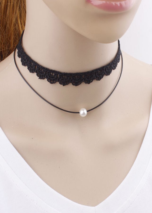 Vòng cổ choker ren trắng đính ngọc giọt nước cá tính HANA9999 Shop