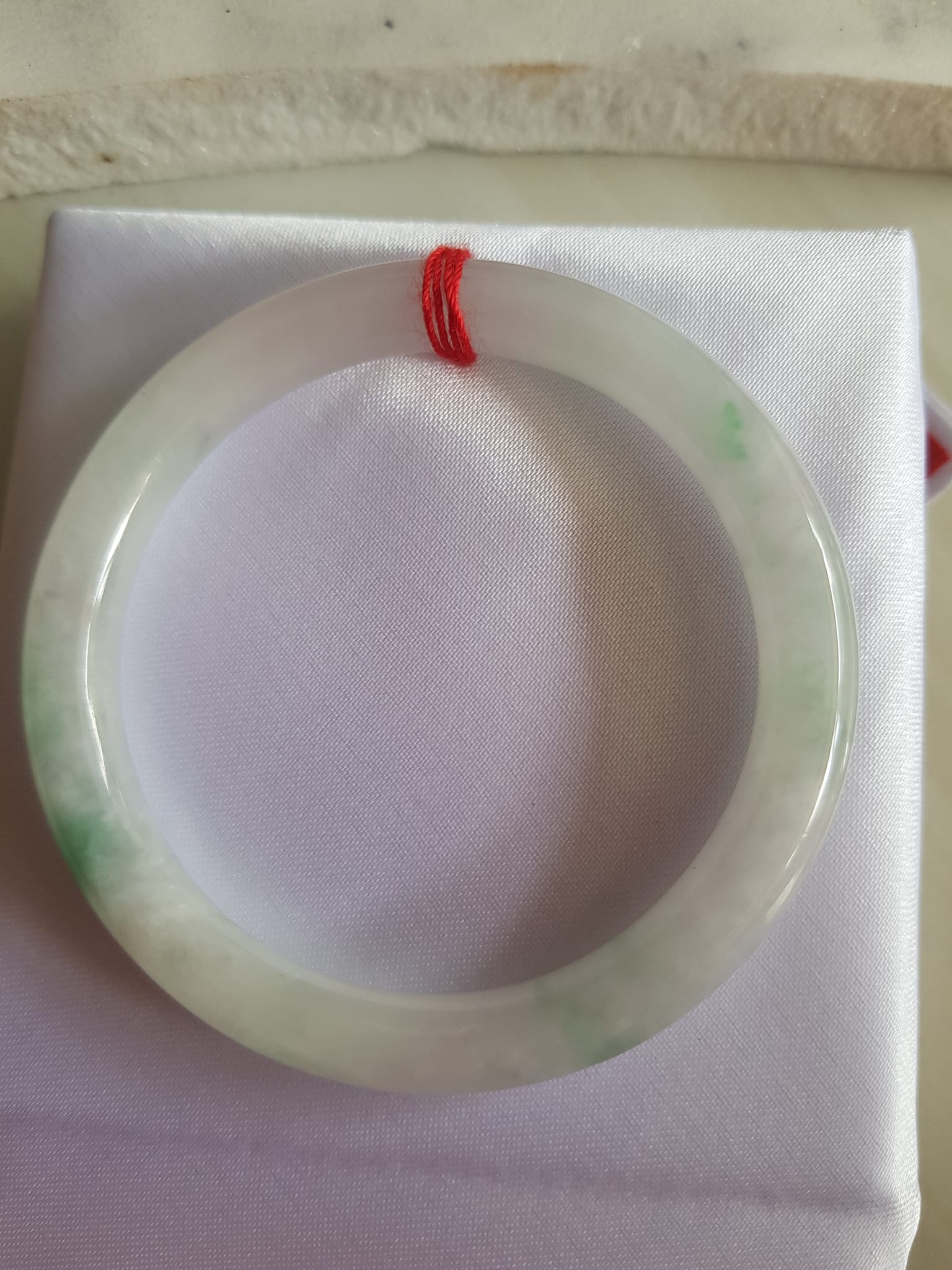 ✨Vòng đeo tay Nữ đá cẩm thạch tự nhiên T Lý Size 49mm x cọng 7mm Màu trắng sáng bóng xanh lý 3 chỗ đều quanh vòng rất đẹp Nữ cân Nặng 40kg-49kg đeo đẹp ạ