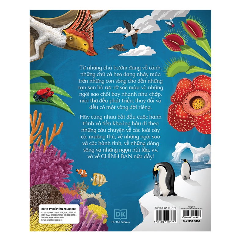 Mua tại TiktokTừ những chú bướm đang vỗ cánh, những chú cá heo đang nhảy múa trên những con sóng cho đến những rạn san hô rực rỡ sắc màu và những ngôi sao chổi bay nhanh như chớp, mọi thứ đều phát triển, thay đổi và đều có một vòng đời riêng. Hãy cùng nhau bắt đầu cuộc hành trình vô tiền khoáng hậu đi theo những câu chuyện về các loài cây cỏ, muông thú, về những ngôi sao và các hành tinh, về những dòng sông và những ngọn núi lửa, và về chính bạn nữa đấy!