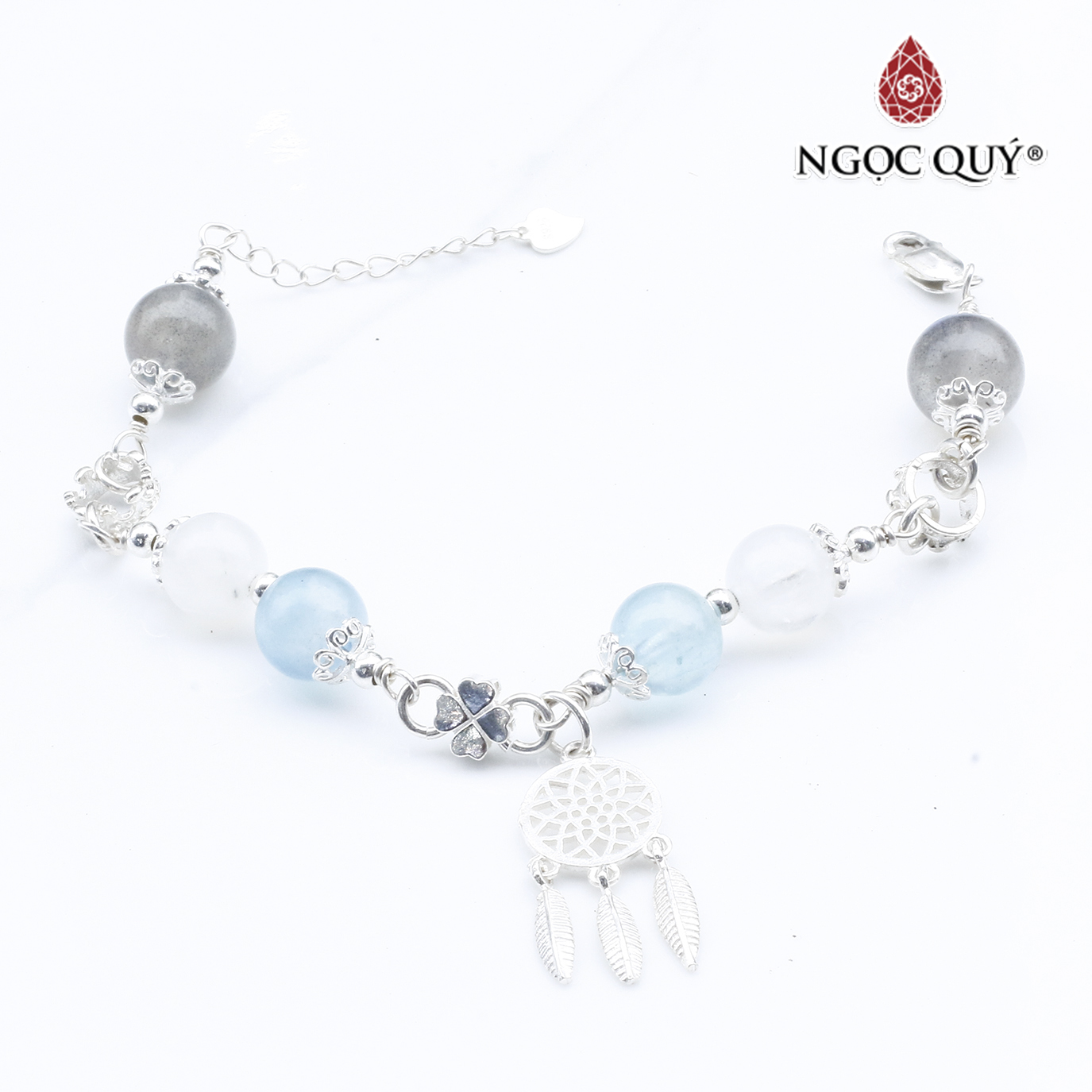 ✨Vòng lắc bạc phối charm aquamarine và thạch anh trắng mệnh thủy, mộc - Ngọc Quý Gemstones