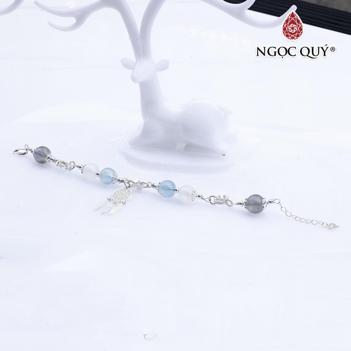 Lắc tay bạc đá aquamarine - Hợp mệnh thủy, mệnh mộc | Ngọc Quý Gemstones |